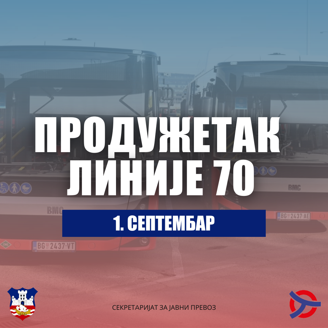 Почев од 01.09. линија 70 се продужава од ТЦ „ИКЕА“ до „AVA shopping Parka“.